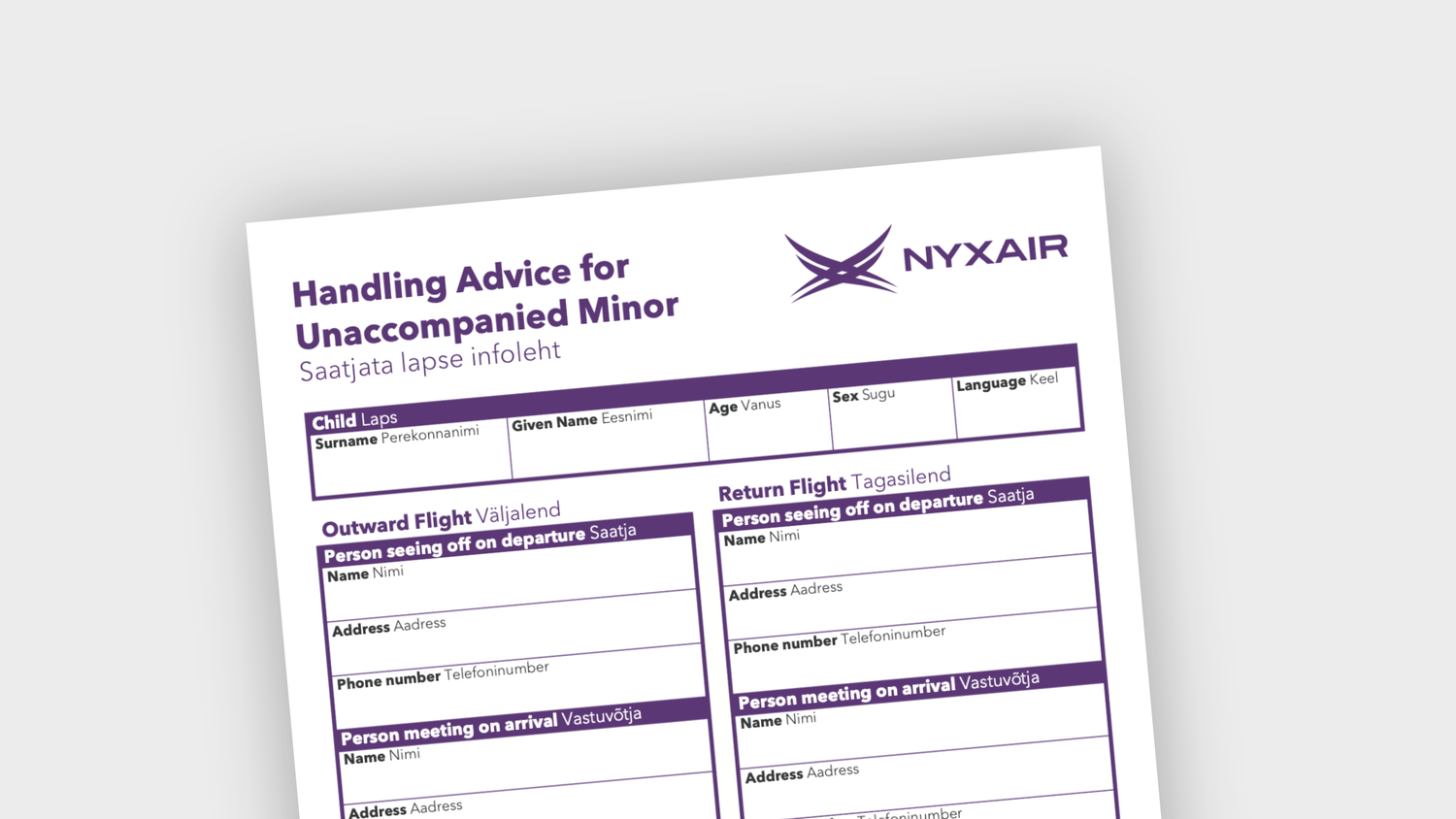 Du behöver även fylla i tre exemplar av vårt UM-formulär detta kan du skriva ut hemma eller få på flygplatsen. Lämna sedan över formulären vid incheckningen.